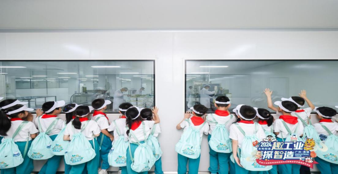 信息时报讯(记者 李龙)在广州黄埔区的永和街道,广州丘比食品有限公司的透明观光廊里,幼儿园的孩子们看到沙拉酱瓶在自动化生产线上鱼贯而行,发出“哇”的惊叹,急切地问:“老师,那个机器手臂会累吗?”在广东燕塘乳业股份有限公司的牛奶工厂,巨大的流水线让牛奶盒整齐列队,孩子们兴奋地讨论:“它们也在排队上学吗?”