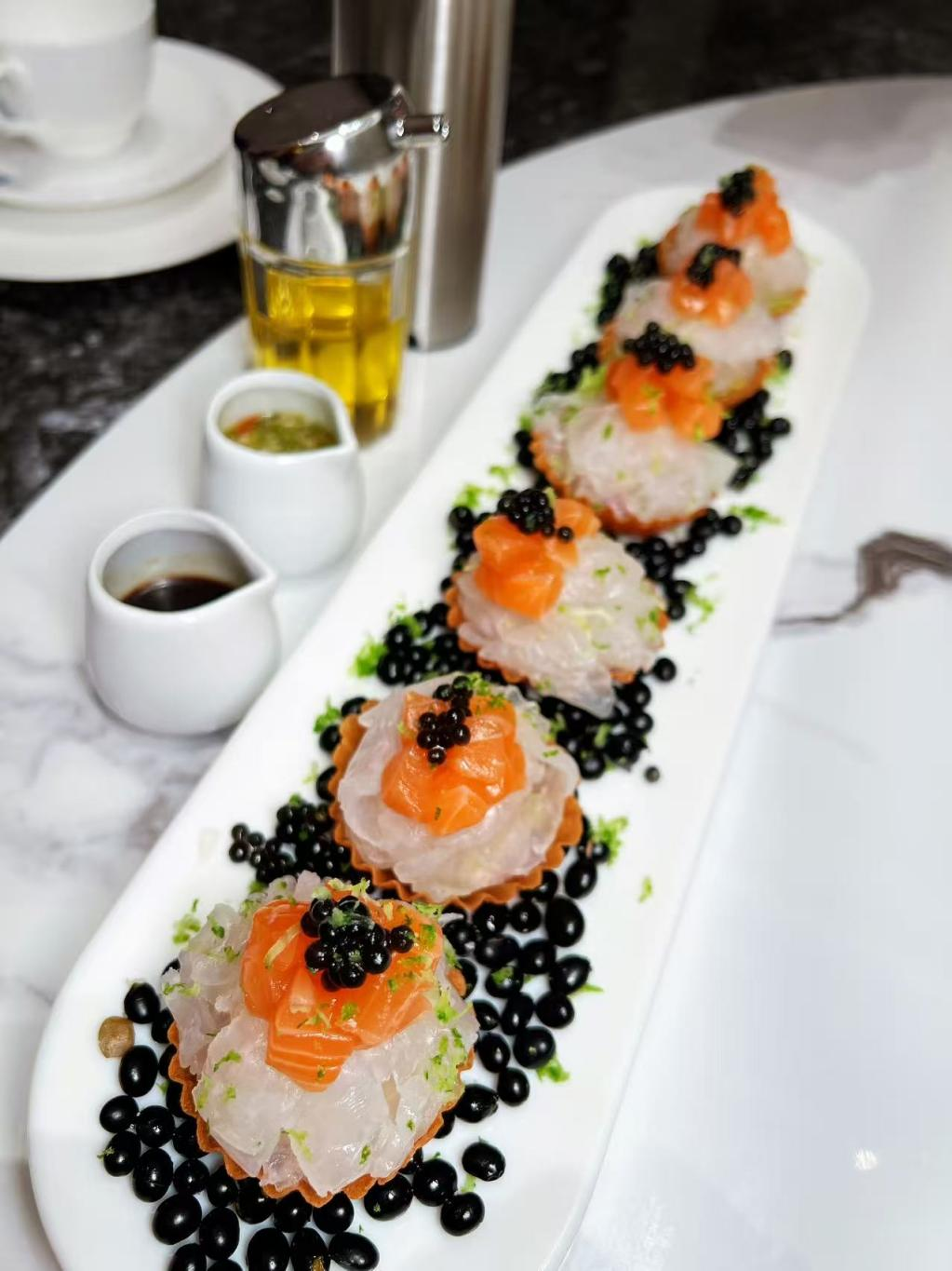 值得推荐菜式很多,但是有一道至“鲜”菜式不得不提,那就是“鼎盛一口鱼生”。这道菜以极致新鲜的鱼为起点,经由“薄如蝉翼,鲜甜爽滑”的精湛刀工彻底释放其清甜。创新的配料与酱汁碰撞出层次丰富的复合鲜味,确保每一口都是极致的味蕾享受。