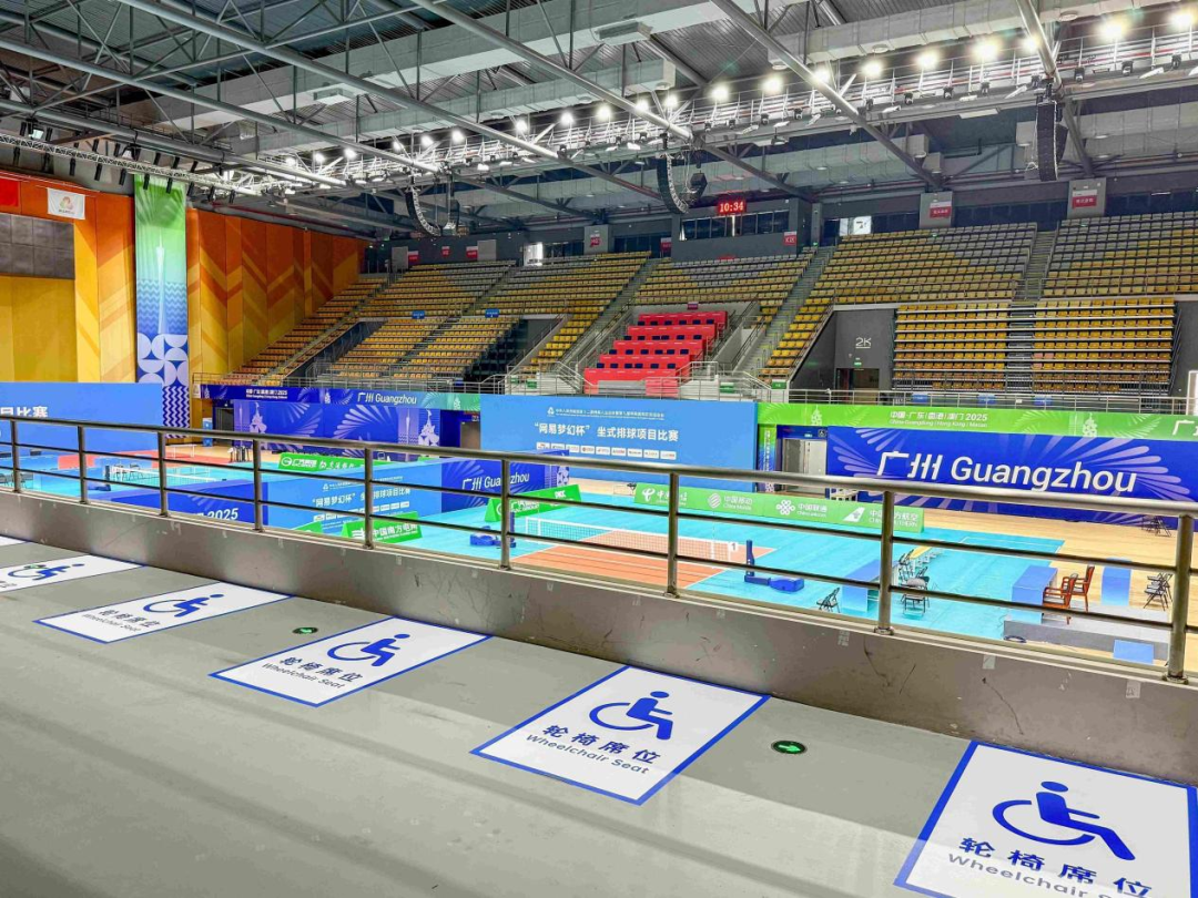 作为承办坐式排球赛事的场馆,该体育馆除疏通轮椅通道外,还对地面摩擦系数、坡度等进行严格把控,以满足运动员快速移动、灵活转向等需求。