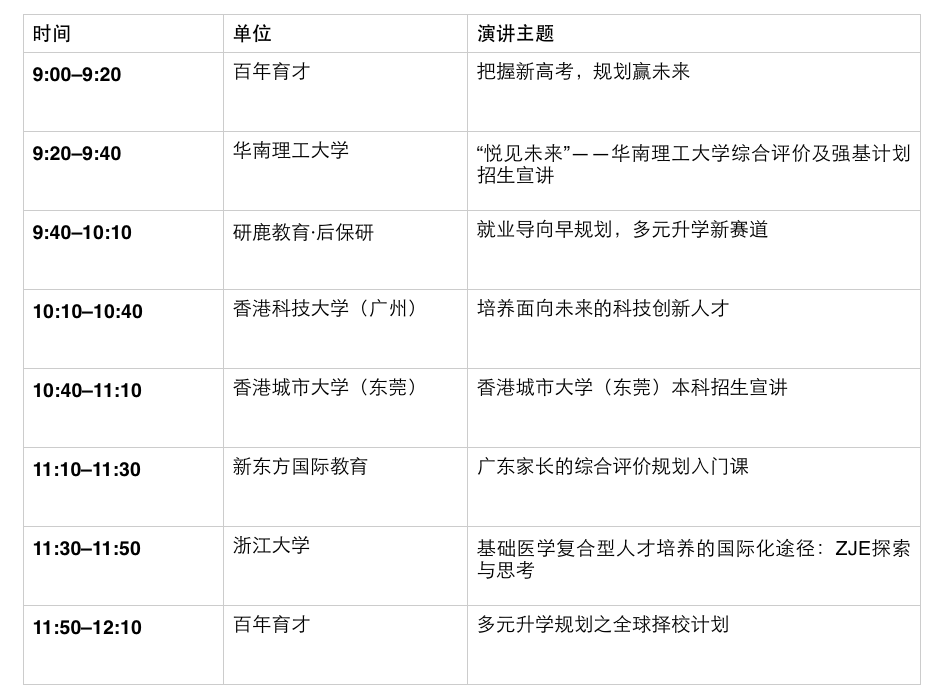 其中,华南理工大学、香港科技大学(广州)、香港城市大学(东莞)、浙江大学等高校均将上台宣讲最新的招生政策、培养方案等。