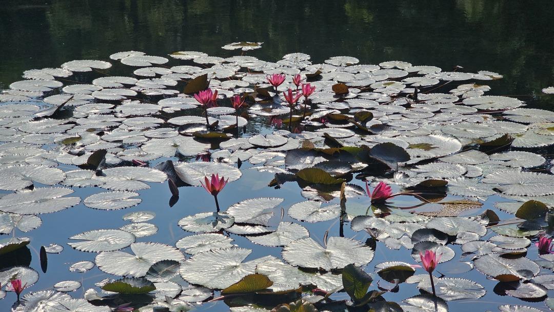 湖面上,紫色睡莲宛如星辰坠入水中,层层叠叠的花瓣簇拥着莲蓬与花蕊,恰似“众星捧月”;粉色睡莲娇柔婉约,白色睡莲清雅脱俗,与翠绿圆润的莲叶相映成趣,恍若一幅流动的水彩画卷。不少晨练市民驻足湖边,纷纷拍照打卡,流连忘返。