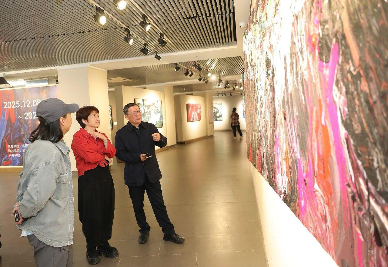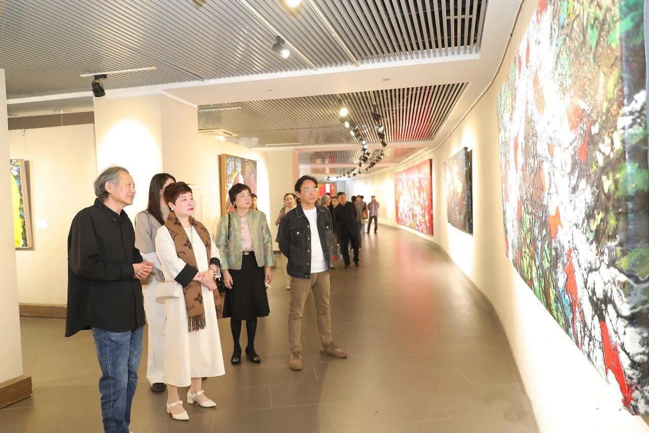 中国美术家协会理事、广东省美术家协会主席团成员、珠海市美术家协会主席、珠海画院院长刘文伟在致辞中对展览的开幕表示热烈祝贺。他谈到,王玉成的艺术之路充满传奇色彩,湖北求学时期筑牢的艺术根基,改革开放后南下珠海创业的风雨历练,都为他的创作积累了宝贵的精神财富。“王玉成是楚人的后裔,骨子里带着楚文化的浪漫与大气,他的作品以楚辞命名,色彩恢宏流淌,肌理厚重温润,既蕴含楚地大漆工艺的质感,又彰显乘风云、御文气的洒脱,让观众感受到古老文化的独特力量。”刘文伟强调,珠海作为开放包容的艺术沃土,始终致力于搭建艺术交流平台,王玉成的展览不仅带来了视觉与精神的双重享受,更彰显了艺术家的坚守与创新,为珠海文化事业注入了新活力。