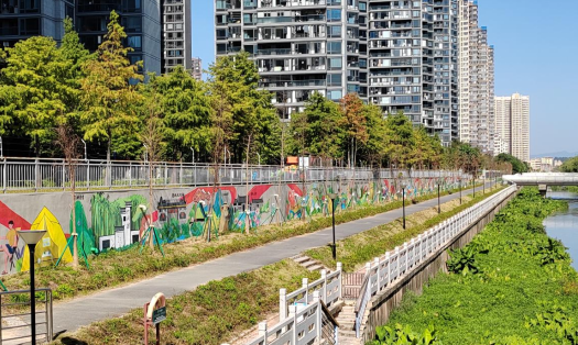 漫步于花城街田美河杜鹃段河畔,一幅生动的城市画卷正沿水徐徐铺展——波光潋滟处,花木掩映间,长达百米的彩色艺术墙绘跃然眼前。近日,随着广州市花都区花城街“花语绿廊”绿美示范带项目全面完工,这条曾经普通的河岸,已变身为居民散步打卡、亲子休闲的热门地。