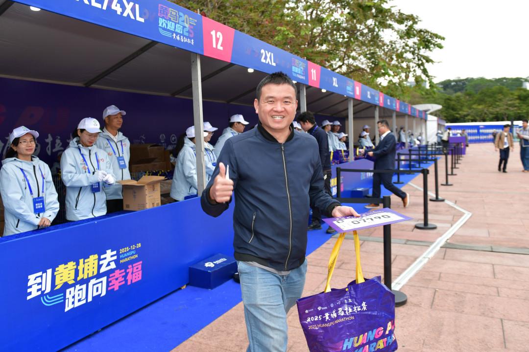 “虽然冷得直搓手,但一进博览会场就热血沸腾了!”来自东莞的业余跑者李伟举着刚刚领到的参赛号码布,指着身后28米长的巨幅主题打卡墙兴奋地说,“你看这墙上的标语——来黄埔跑马咧,最紧要系开心,这不就是我们跑者最想说的吗?”