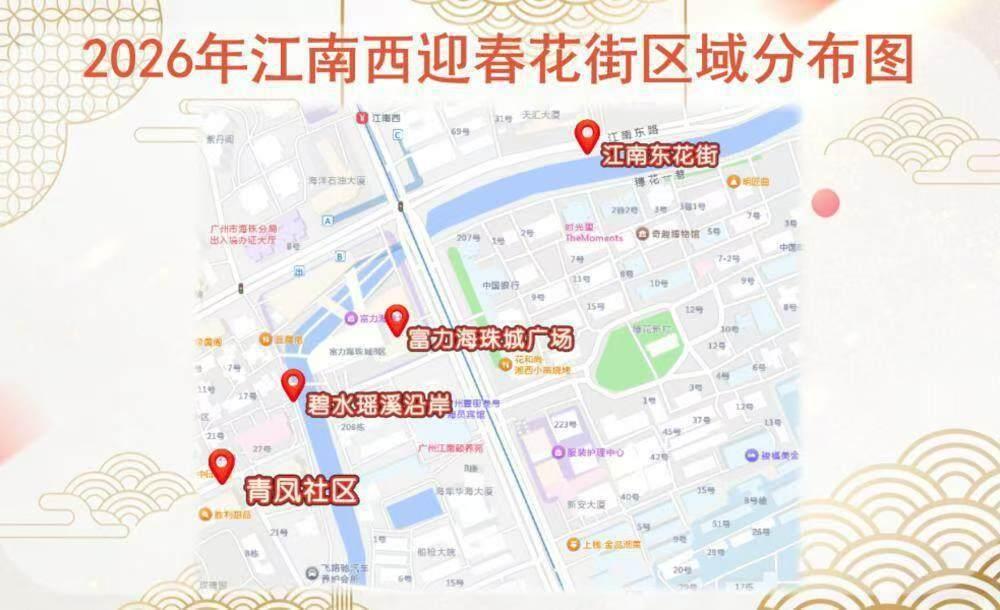 记者今日获悉,2026年春节期间,广州市海珠区江南西商圈花街再度升级归来,2026年2月6日至14日,江南西“迎春花街”将以一场为期9天的“新春盛宴”强势出圈。