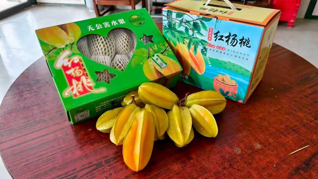 种植基地技术负责人陈叔凡介绍说:“我们的杨桃有四大特点,果边厚实、有蜜晶点、成熟后依然硬脆,以及拥有浓郁的蜜香味。”基地的红杨桃甜度普遍达13至16度。除了鲜果销售,这颗杨桃还“闯”进了厨房。因其果肉硬脆、甜度高,它不仅是打火锅、煮鸡煲的绝佳配料,还能用于泡酒和入菜。此外,陈叔凡还设计了专属的五星凹槽包装,有效避免了运输过程中的碰撞损伤。