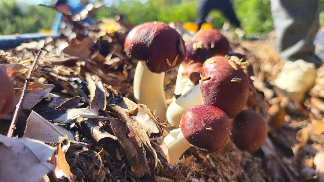 近日,增城区正果镇畲族村迎来头茬红松茸的丰收。采摘期持续至次年3月初。游客采摘完新鲜破土的红松茸后,可以将其与当地自养的走地鸡一同放入锅中,煮成一锅鲜香四溢的“红松茸煲鸡”。据悉,为延伸产业链,村里已开发出松茸干、松茸面、松茸酱油、松茸米酒等一系列深加工产品。