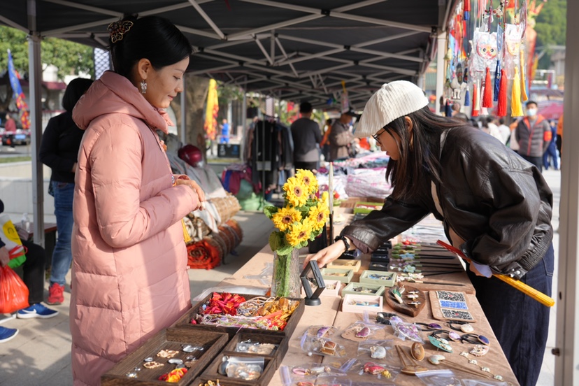 广场四周的好物市集里,吆喝声、欢笑声透着乡间的热气腾腾。本土特色美食、进口水果、非遗手工艺品及文创产品一字排开。油光锃亮的烧猪外皮酥脆,师傅刀起刀落间香气四溢,引得食客纷纷驻足;阳光玫瑰晶莹剔透,圣女果酸甜多汁,百香果带着浓郁果香,摊位前不时有人拎着满满一袋鲜果笑意盈盈。最受欢迎的当属棉花糖摊,蓬松的棉花糖在阳光下泛着柔光,小朋友们挤在摊前,踮着脚尖、伸着小手叽叽喳喳,有的举着刚做好的棉花糖,甜笑挂在脸上,嘴角沾着糖丝,成为市集里最治愈的风景。吴梓清说,这让她想起小时候的自己,也是里面的一员。
