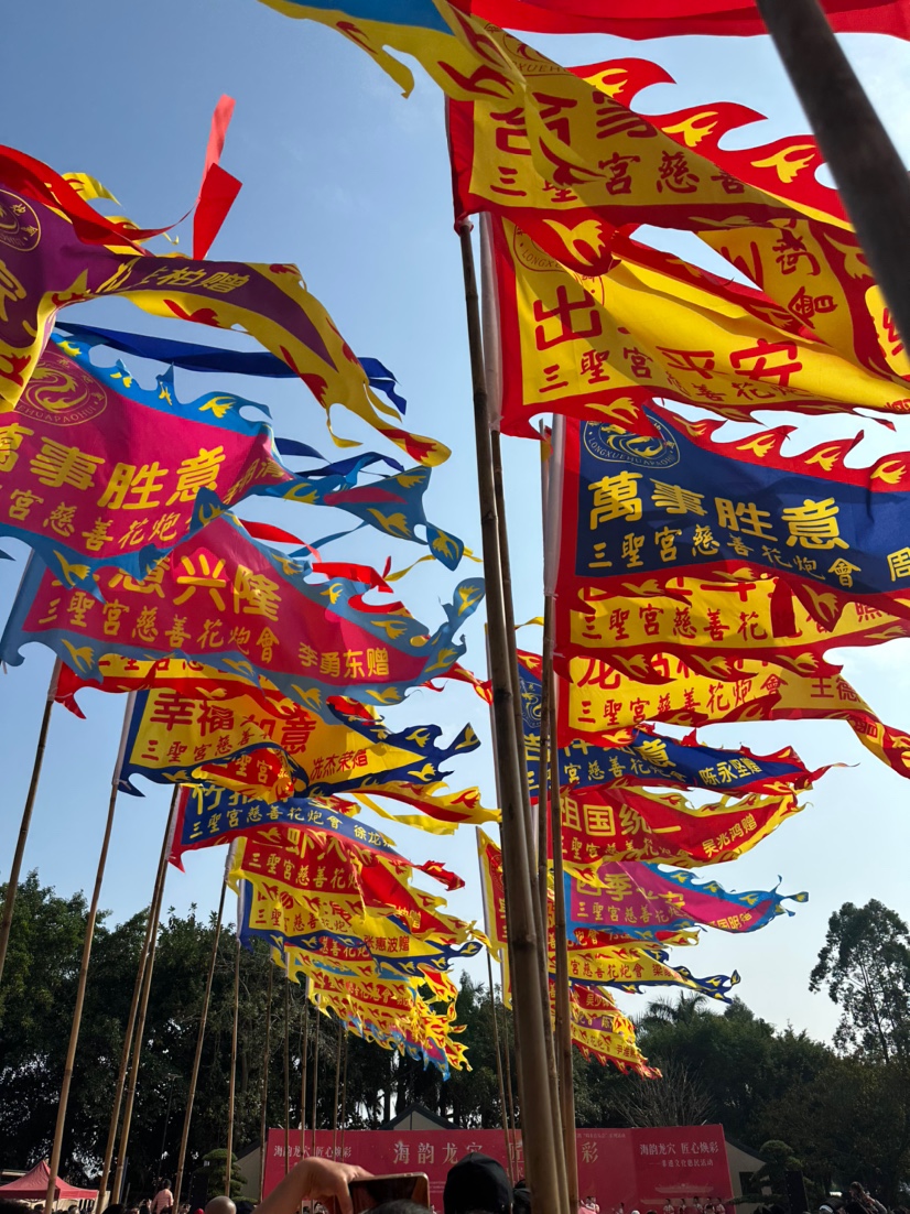 阳光正好,彩旗如潮,市集喧腾。三圣公诞里,一面面彩旗承载着不变的祝福,一缕缕烟火氤氲着生活的暖意,一场场奔赴联结着湾区的情谊。