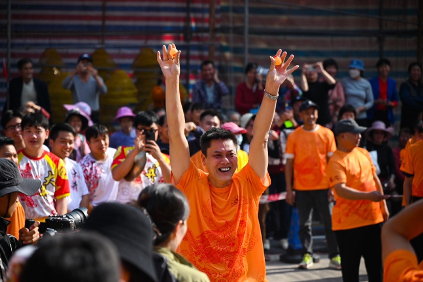 第二天的正午,岛上居民的“花炮会”进行集体祭祀仪式,并请来醒狮队助兴。
