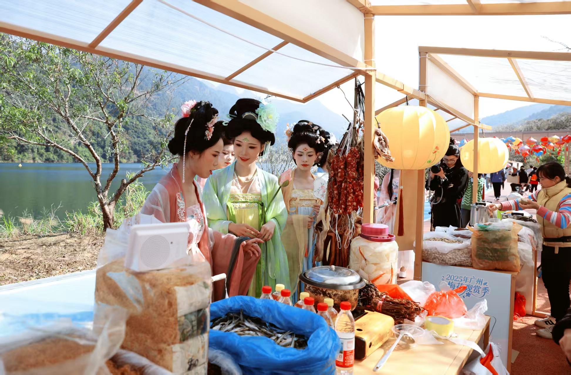 本届梅花观赏季将持续近一个月。开幕式当天,“流溪烟渚”主题摄影大赛同步启动,广邀市民游客用镜头定格流溪河生态之美;游园市集、梅妃剧本游等互动环节趣味十足,传统文化与创新体验碰撞新鲜火花;广州工人艺术团带来歌舞、粤剧、杂技等精彩演出,推动文化惠民与旅游节庆深度融合。期间,游客还可参与草本茶疗、跨年祈福灯会、森林音乐节、咖啡节等特色康养项目接连登场,在自然中放松身心、乐享生态之旅。