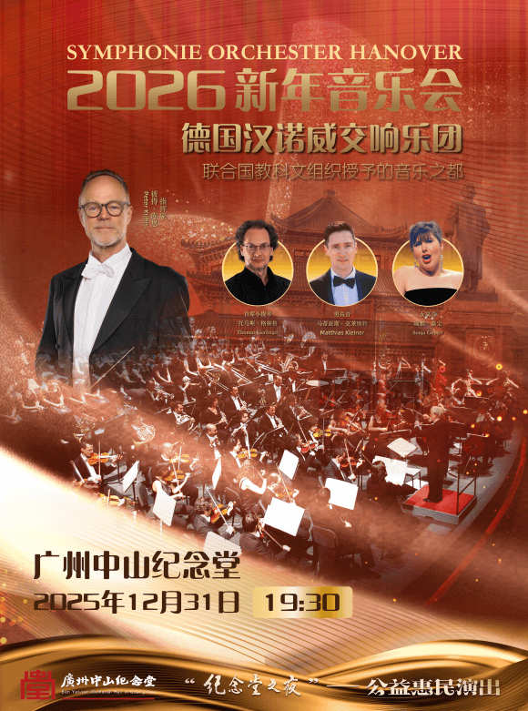 德国汉诺威交响乐团2026跨年新年音乐会将在广州中山纪念堂举办,来自“音乐之都”汉诺威的乐团将以其纯正的德奥交响血统与辉煌的演奏传统,与广州乐迷共同点亮岁末之夜。