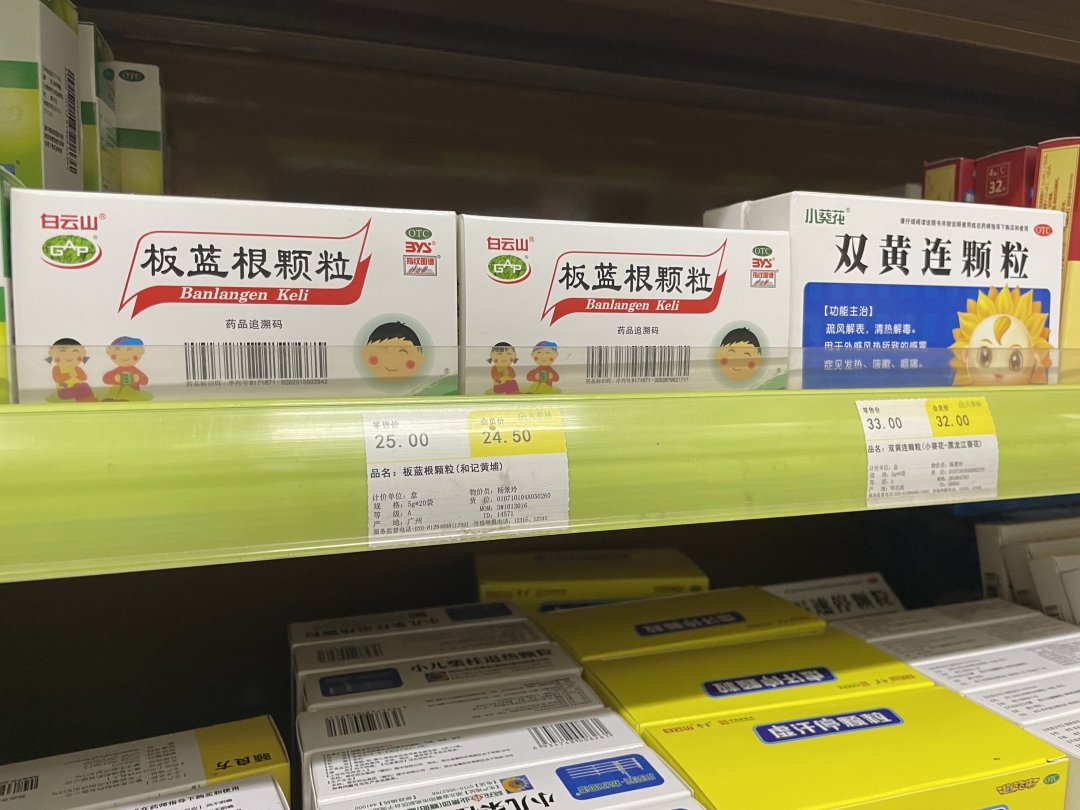 “门店的小儿抗生素和小儿抗病毒药都卖得非常好。”广州市白云区某连锁药店一位负责人告诉记者,以小儿抗生素为例,儿童用的阿奇霉素和儿童用的奥司他韦都非常畅销。在该连锁药店内,儿童装白云山板蓝根颗粒被摆放在了货架显眼处。“近期市面上包括儿童装板蓝根颗粒等在内的小儿抗病毒药销量同比、环比都出现了明显增长。”该药店负责人透露,好在各家药企供应较为积极,所以就算偶有断货也马上能补齐。