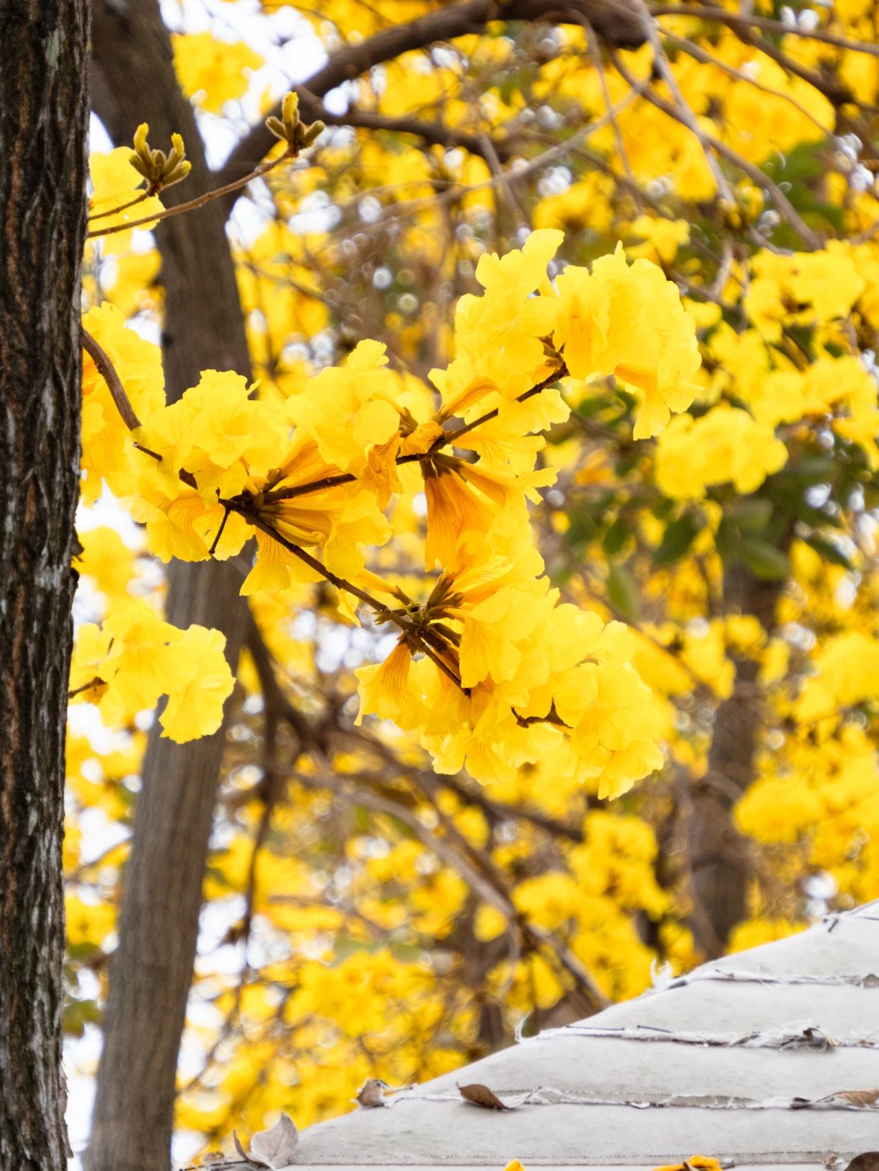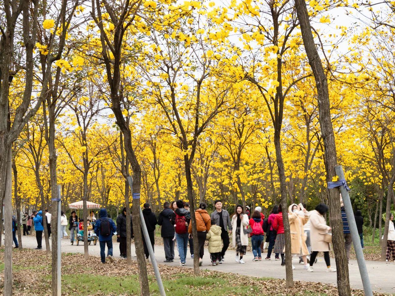 与花期较长的紫花风铃木不同,黄花风铃木的花期较短,街坊们赏花要抓紧时间。