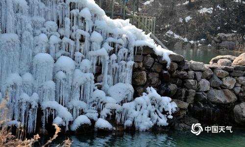近日,河南大部天气转为晴天,气温回升,舞钢祥龙谷景区内仍有积雪和冰凌,在阳光照耀下晶莹剔透。(图/ 黎新民)