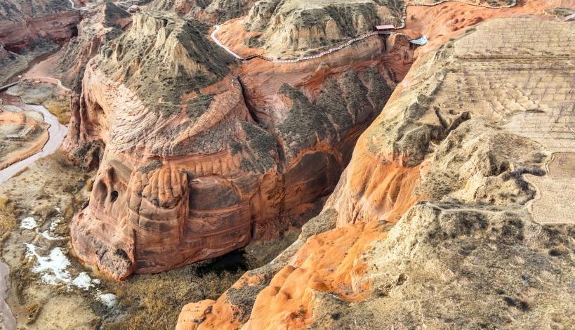 陕西榆林:龙洲丹霞红砂岩纹理清晰 红黄相间仿佛“时光指纹”