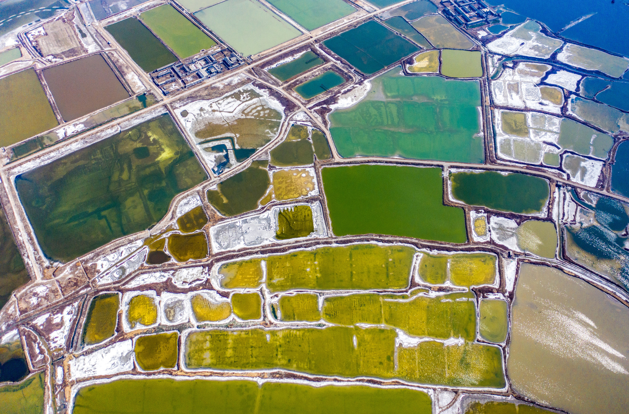 2024年3月6日,山西运城,早春时节,受天气变化影响,盐湖色彩淡雅。视觉中国