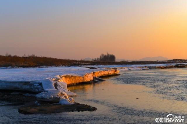 2024年3月11日,吉林市,松花江舒兰、九台江段目前正是开江时节,搁浅在岸的冰面融化,形成冰挂。视觉中国