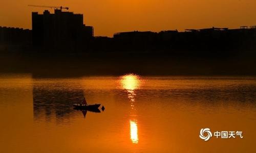 3月24日清晨,湖南衡阳湘江边一轮红日伴着朝霞缓缓升起,将天空染成橙红色,霞光映照在平静的江面上,水天一色,如同一幅幅美丽的油画。(图文:汪普林)