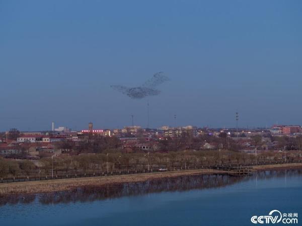 2024年4月8日,沈阳康平县卧龙湖生态区水域上空,数万只花脸鸭同时与夕阳共舞,形成壮观的“鸟浪”。视觉中国