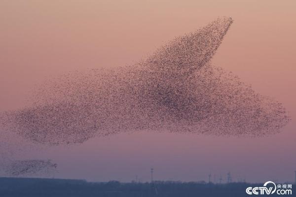 2024年4月8日,沈阳康平县卧龙湖生态区水域上空,数万只花脸鸭同时与夕阳共舞,形成壮观的“鸟浪”。视觉中国