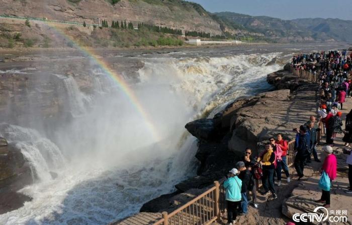 2024年4月18日,黄河壶口瀑布出现“彩虹桥”景观。视觉中国