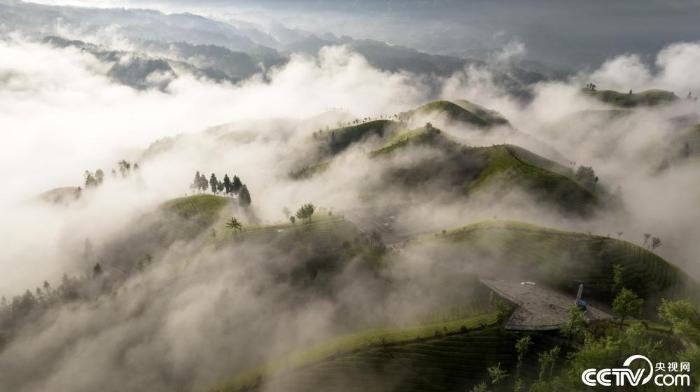 2024年4月23日,雨后的湖北恩施鹤峰县走马镇木耳山万亩有机茶园云雾缭绕,成为一道美丽的生态风景线。 视觉中国