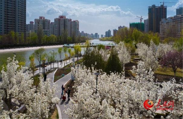 库尔勒永安塔旁梨花盛开。黄万里 摄
