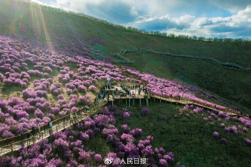 4月27日,呼伦贝尔市扎兰屯市的兴安杜鹃竞相绽放。据悉,野生杜鹃花主要分布在大兴安岭南簏,故被称为“兴安杜鹃”,而扎兰屯市因当地气候宜人,每年兴安杜鹃在这里最先绽放。