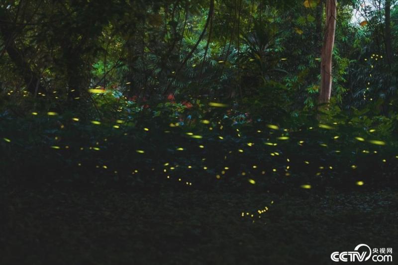 2024年5月5日晚,广州华南国家植物园苏铁园附近的草丛中亮起点点灵动的光,这是萤火虫在夜色中飞舞求偶,犹如繁星点点。 视觉中国