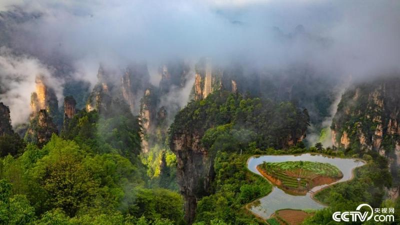 2024年5月5日,湖南张家界,立夏时节,雨过天晴,张家界国家森林公园云海翻涌。 视觉中国