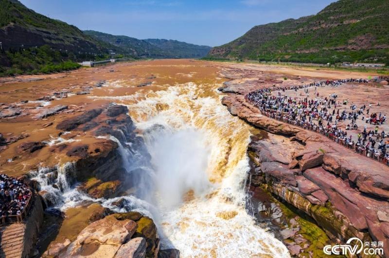 2024年5月2日,山西临汾,黄河壶口瀑布现“金流飞瀑”美景。视觉中国