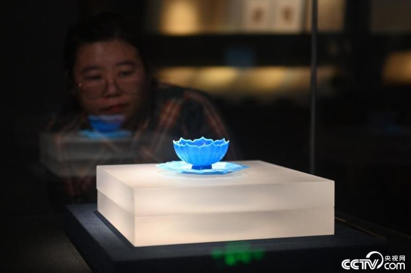 据最新研究发现,甘肃省博物馆珍藏的一件国宝级文物玻璃莲花托盏,是迄今为止中国出土最完整的一套元代玻璃托盏。盏高4.9厘米,口径8.9厘米,通体为半透明普蓝色,呈七瓣莲花形,托盘边沿呈八瓣莲花形。因其“冰肌玉骨”仿若一朵盛开的蓝莲花,亦被简称为“蓝莲盏”。视觉中国