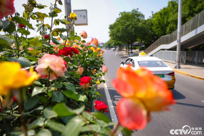 2024年5月9日,北京街头蔷薇、月季花盛放,扮靓城市。视觉中国