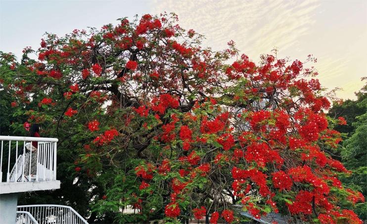 火红的凤凰花与青砖镬耳的岭南古祠交相辉映。何善福摄