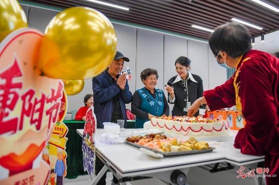 2024年10月10日,内蒙古鄂尔多斯,社区举行“我们的节日·福满金秋相约重阳节”活动。(王晓博 摄/光明图片)