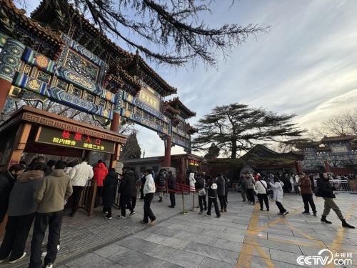 2025年1月1日,元旦第一天市民在雍和宫烧头香进香祈福。 视觉中国