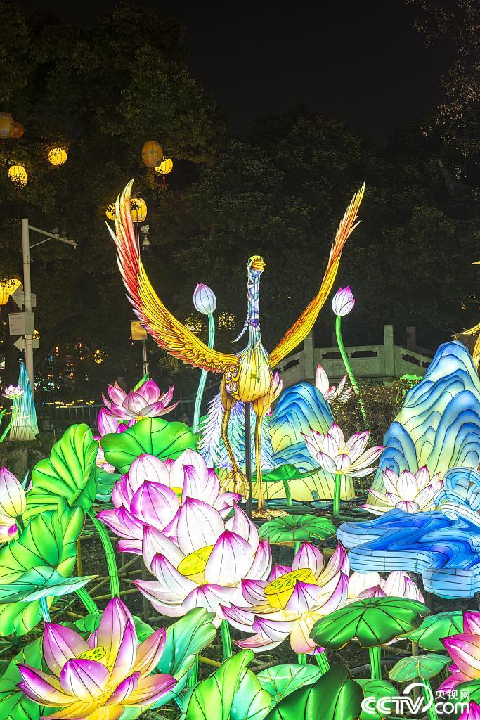 南京,39届秦淮灯会白鹭洲公园的花灯组。视觉中国