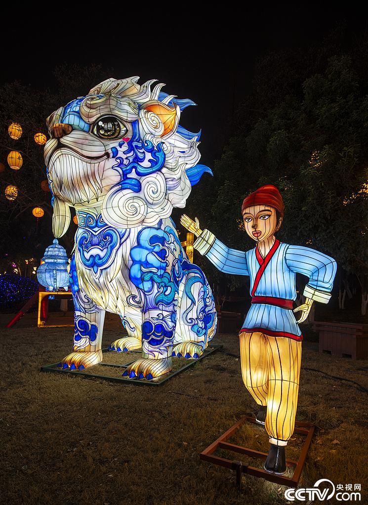 南京,39届秦淮灯会白鹭洲公园的花灯组。视觉中国