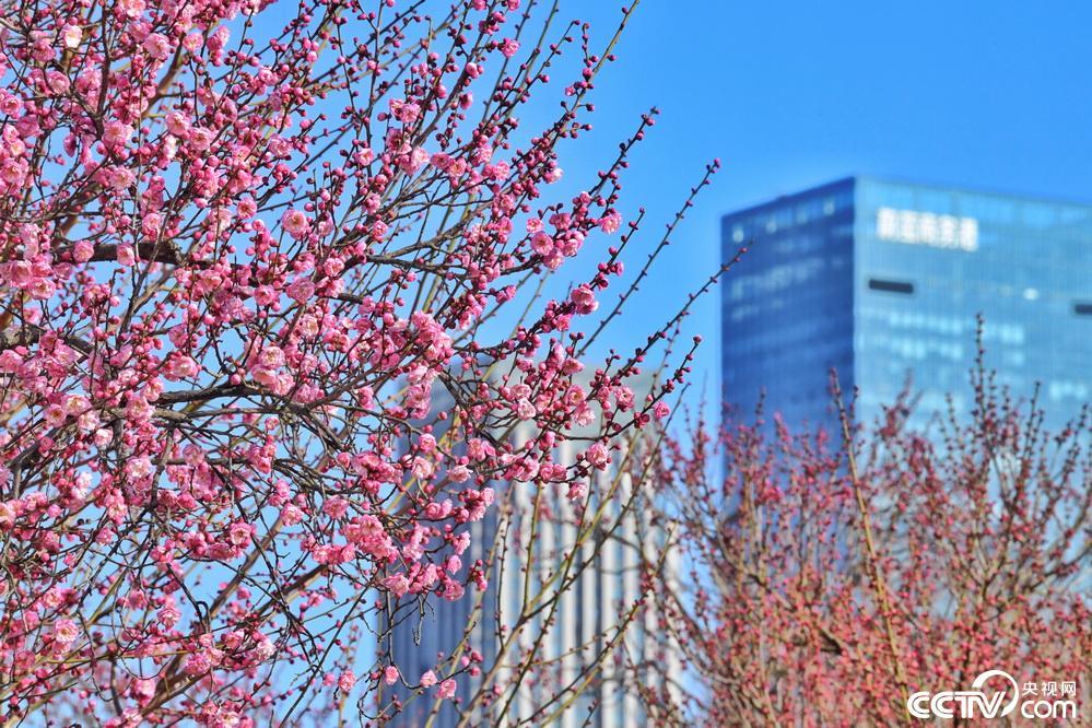 2月8日,安徽省合肥市蜀山区绿轴公园内的梅花绽放。视觉中国