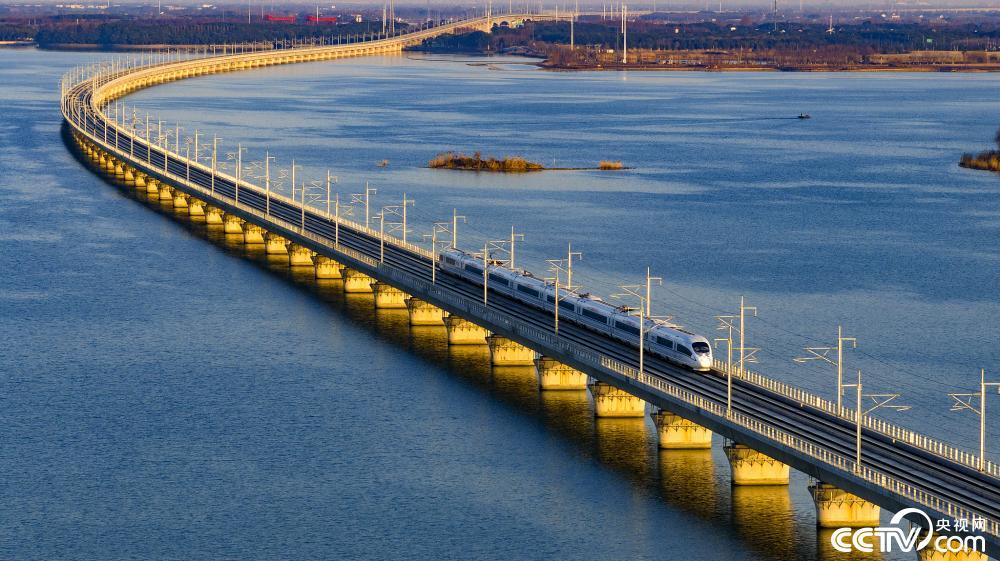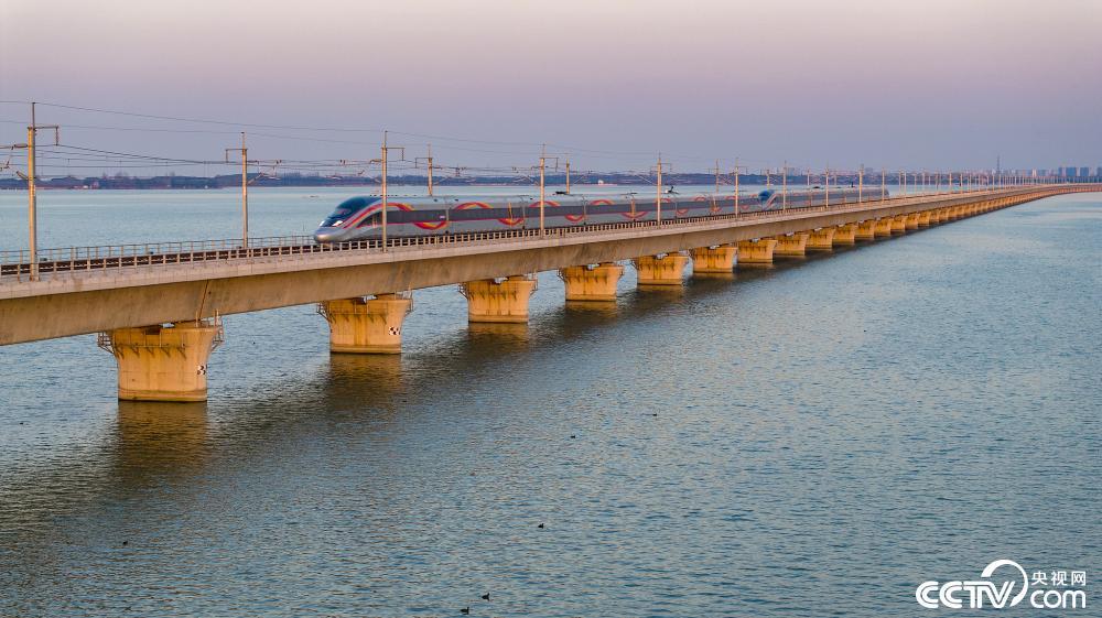 2025年2月9日,苏州,沪苏湖高铁现“金光穿洞”美景。视觉中国