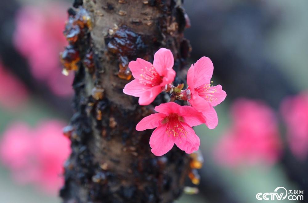 2025年2月23日,广东河源市连平县上坪镇小水村果园里面绽放的桃花。视觉中国
