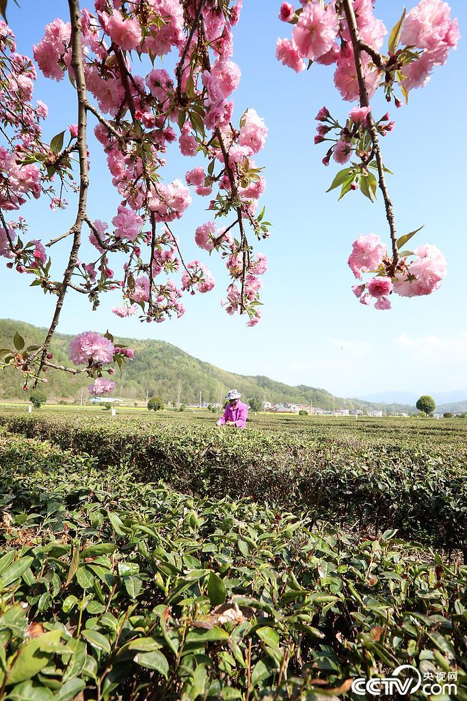 2025年4月7日,湖北十堰,房县窑淮镇三岔村生态茶园基地,当地农民在采收春茶。视觉中国
