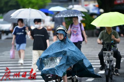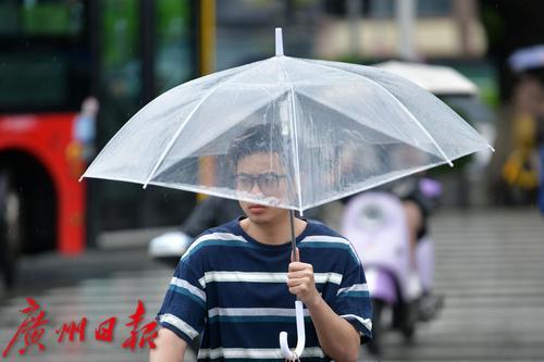 5月7日,受雷雨云团移近影响,天河区上午迎来雷雨,市民纷纷撑伞冒雨出行。文、图/广州日报新花城记者:杨耀烨