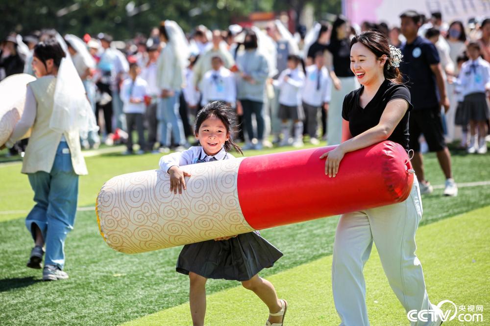 5月11日,在河南省焦作市博爱县体育广场,孩子和妈妈在做游戏。当日,各地组织多彩活动庆祝母亲节。视觉中国