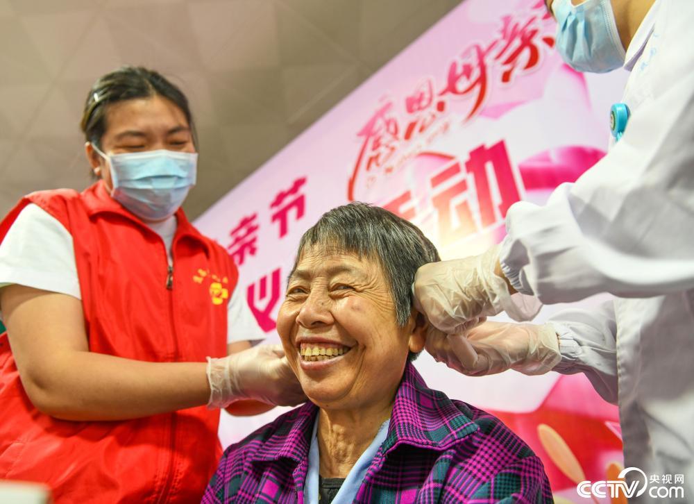 5月11日,在湖南省永州市道县人民医院门诊大厅,医护人员为群众开展耳穴压豆中医特色疗法调理。当日,各地组织多彩活动庆祝母亲节。视觉中国