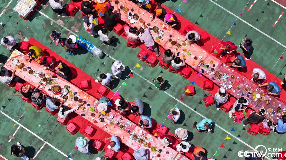 5月11日,江西省吉安市吉州区古南镇街道古南镇社区球场,居民在一起品尝美食,欢度母亲节。当日,各地组织多彩活动庆祝母亲节。视觉中国