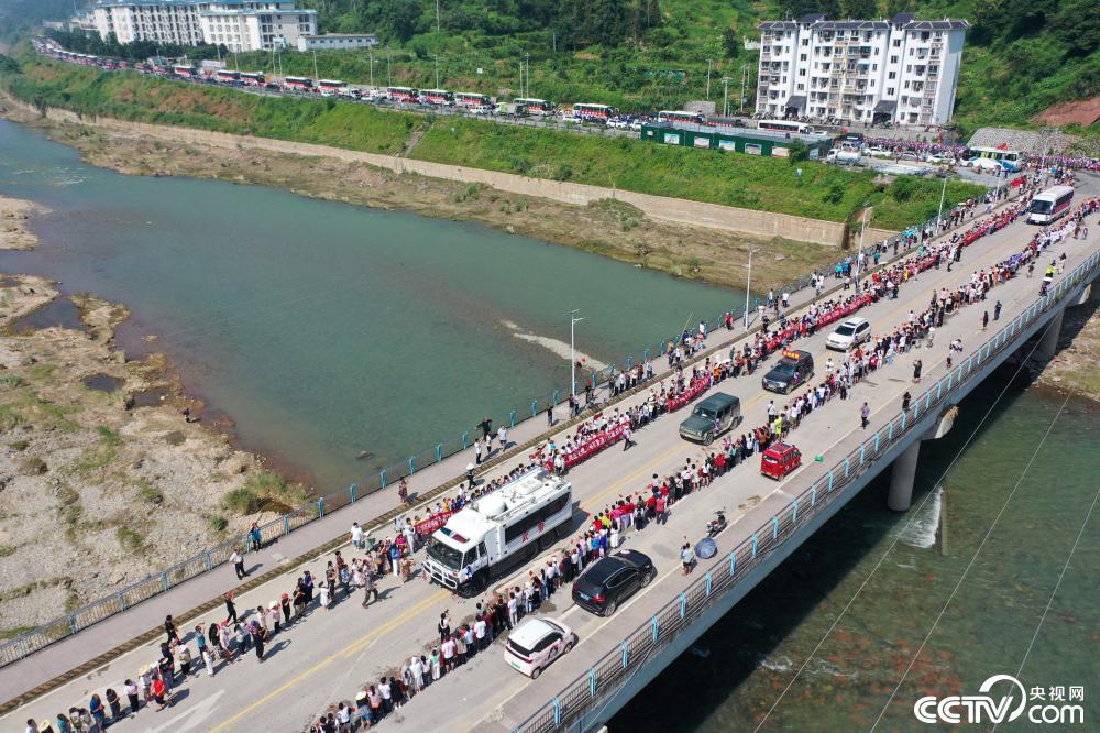 7月5日,驰援贵州黔东南州榕江县的抗洪抢险救援队伍完成任务撤离。当地数万群众自发聚集夹道送别,“救援之恩,永志不忘!”“榕江人民感谢救援队!”,一声声发自肺腑的语言,响彻榕江县城,人们用最质朴的方式送别,定格下军民鱼水情深的暖心画面。视觉中国