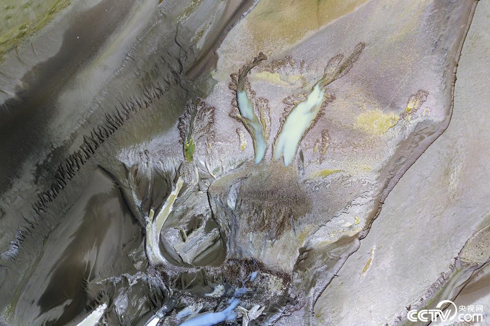 近日,河南济源,黄河小浪底水利枢纽调水调沙结束,在大坝下游的黄河河床上,留下许多五彩缤纷的沙画图案,把几公里长的栖霞湖变成了精美画廊。视觉中国