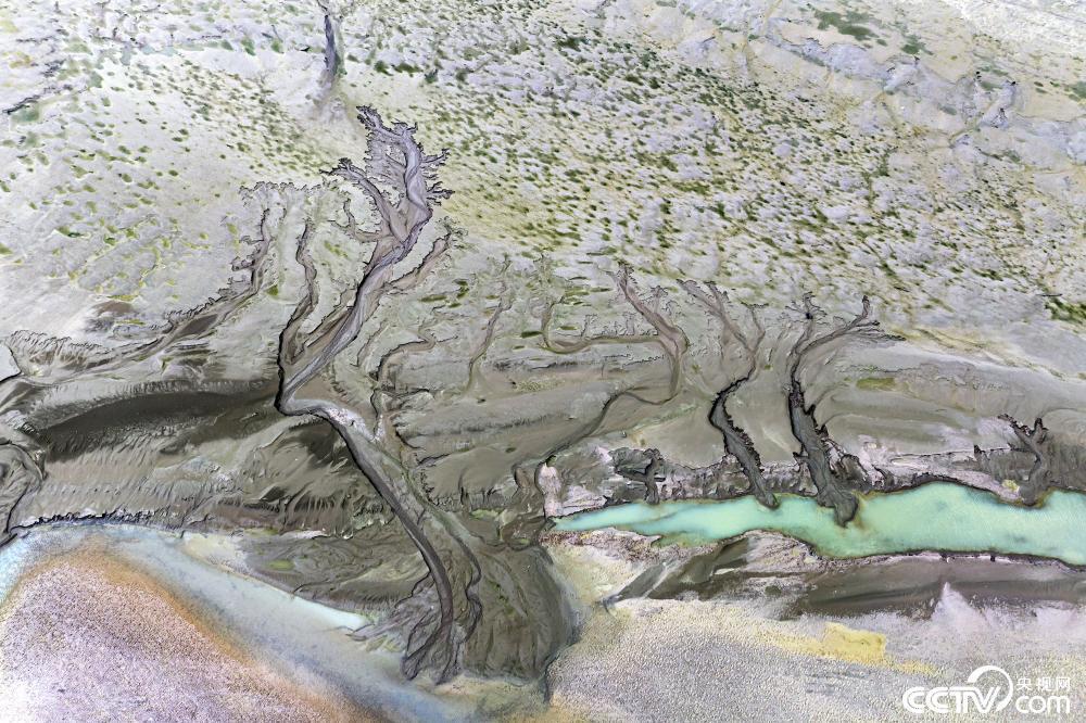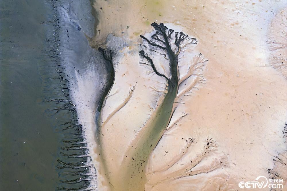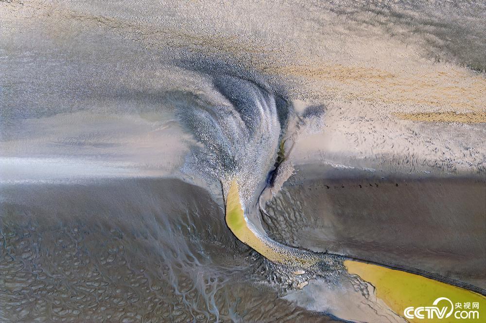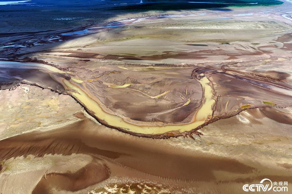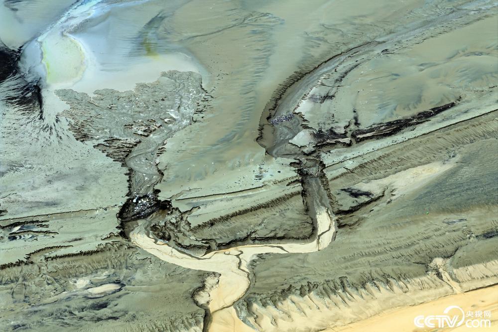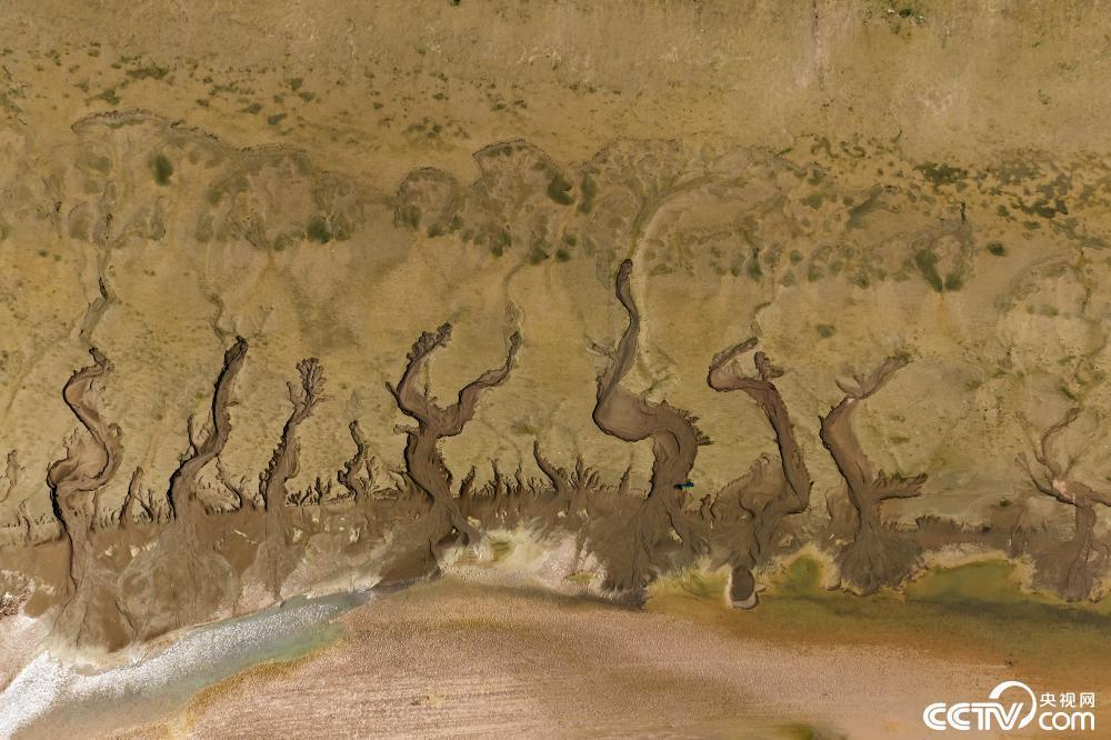 近日,河南济源,黄河小浪底水利枢纽调水调沙结束,在大坝下游的黄河河床上,留下许多五彩缤纷的沙画图案,把几公里长的栖霞湖变成了精美画廊。视觉中国